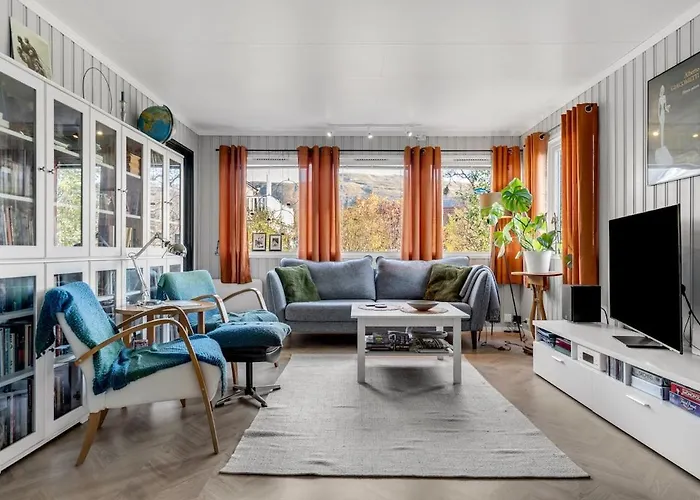 Pour profiter de vos vacances à Tromsø, séjournez à Appartement The Winter Tale House - Free Parking à Tromsø de 100 m², qui se trouve à moins de 2 km du téléphérique de Tromsø et à moins de 25 minutes à pied de Tromsø Public library and City Archives. L'appartement dispose d'une terrasse qui donne sur les montagnes.
